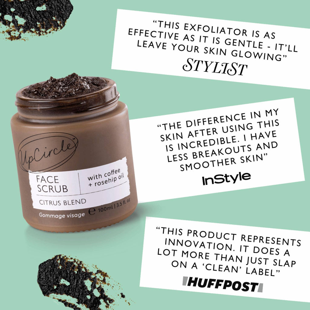 The UpCircle citrus-infused face scrub gently buffs away dry, dead cells to leave skin feeling smooth & glowing. It is made with top-quality Arabica coffee grounds sourced from London-based artisanal coffee shops. Upcycled coffee is even better for the skin since antioxidants increase as coffee is brewed. KEY INGREDIENTS: Anti-inflammatory orange oil soothes redness & balances sebum to even the appearance of skin tone. Lemon oil has natural antiseptic properties to target acne. BENEFITS: Suitable for dry or dehydrated skin. Vitamin & fatty acid-rich shea butter moisturises the skin whilst you scrub. Regenerating rosehip oil fades the appearance of dark marks & scars. making sustainable products using natural ingredients that would otherwise go to waste.